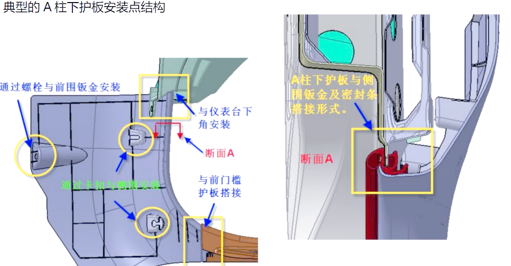 A柱上护板在汽车侧围内饰护板总成中扮演着重要角色,它负责包覆顶棚至仪表台之间的钣金、线束、水管以及气帘等关键部件。在发生侧碰时,这款护板能够有效地保护乘客的头部安全。