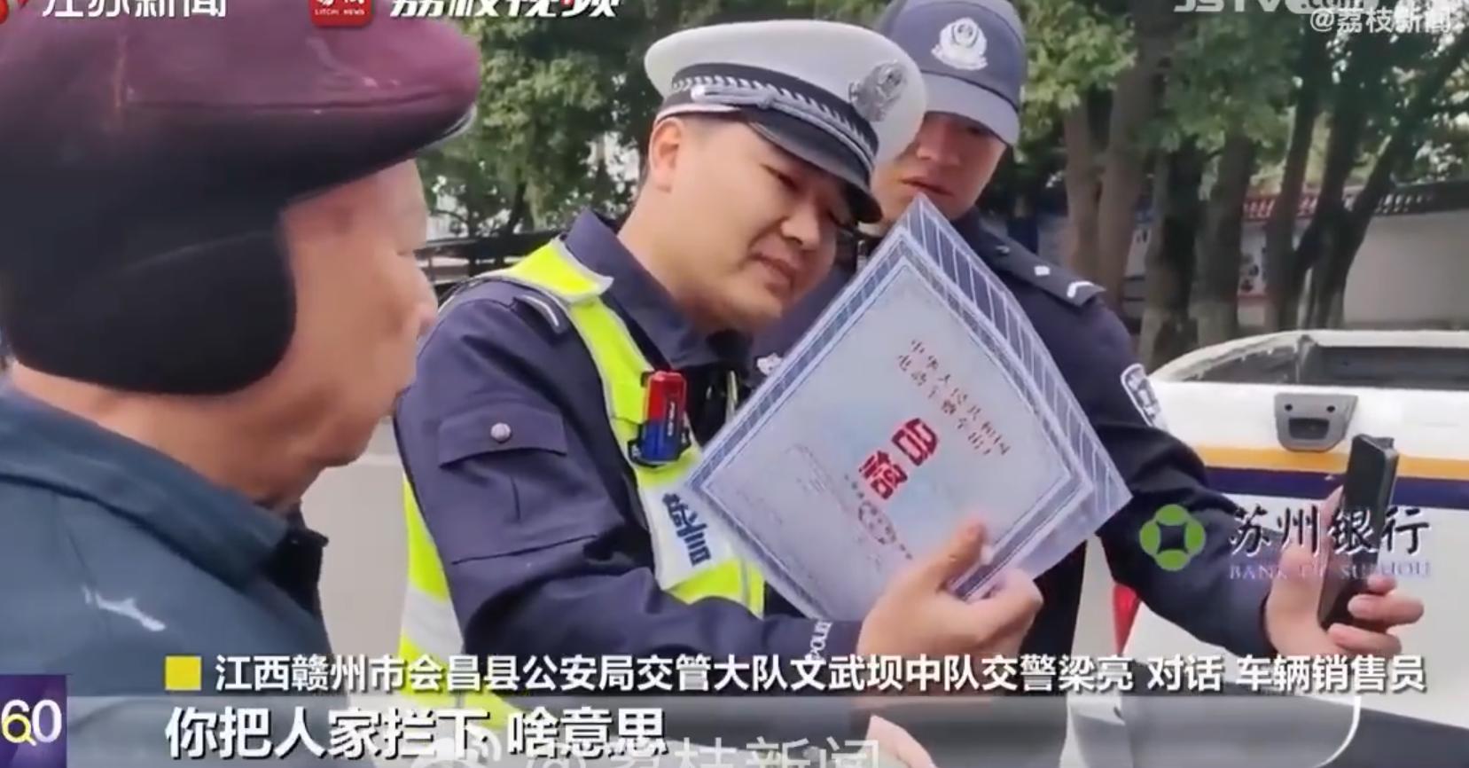 哎呀,交警一检查,发现这辆车竟然是个没有任何合法手续的三无产品。可叶先生却一脸难以置信,他说销售人员明明告诉他这辆车是可以上牌的,而且还买了保险呢。