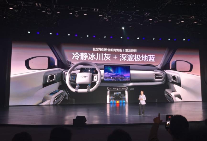 钛3打造星际战车座舱,通过独特科技外观、多样的座舱功能和舒适的配置,为用户提供科技、灵动、舒适的座舱体验。其搭载3舱——贴心前舱、舒享座舱、便捷后舱:贴心前舱满足生活经营、运动娱乐、节日惊喜等三大场景;舒享座舱的多功能灵动岛,满足多种车内使用场景;便捷后舱满足生活收纳和百变工具,带给用户丰富多元的用车体验。