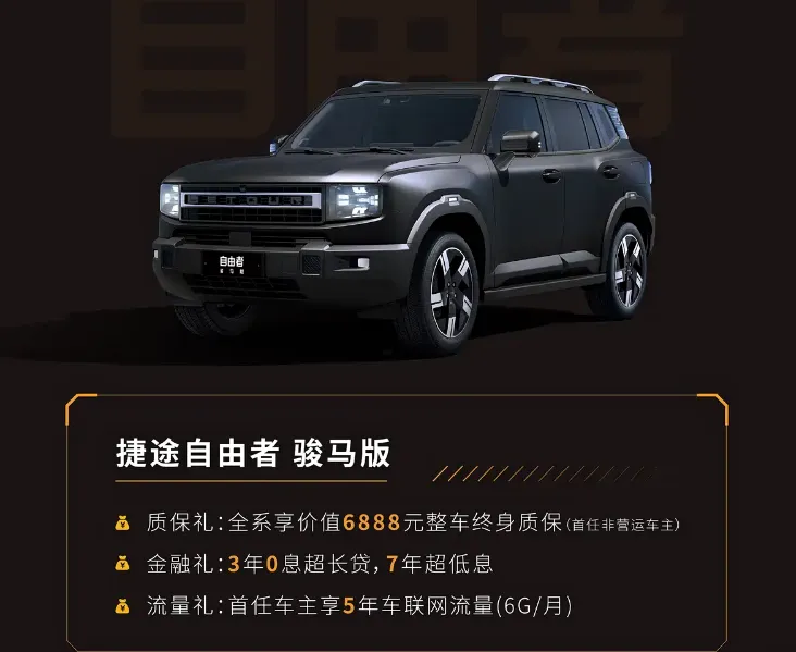 总的来说,捷途自由者骏马版是一台诚意满满的马年限定硬派SUV,10.79万起的限时价格,硬派颜值、扎实动力、丰富配置和稳定的冬季续航,每一点都戳中平民越野用户的需求。不用花大价钱,就能圆越野梦,比坦克300更亲民,比同价位城市SUV更有个性,不管是日常代步还是周末越野,都能轻松胜任。