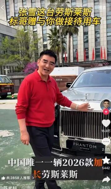 先说说标哥这1300万是怎么来的。霞湖世家邀请陈光标带货,销售额干到了1.2个亿,随后支付给标哥1300万佣金。这个数字不是随便开的,霞湖世家从线下代工转型线上电商,半年破1亿、3年冲上10亿,请陈光标带货本身就是品牌化的重要一步。董明珠站过台、张柏芝代过言,再加上陈光标这一波,百元T恤卖出十几亿的销量,这家工厂老板的品牌梦确实在一步步实现。但标哥拿钱之后的操作就有意思了——他没把钱存银行,而是换成了一辆“中国唯一”的劳斯莱斯幻影。这辆车还没上牌,标哥自己说“第一眼就很喜欢”。但喜欢归喜欢,他转身就要送给张雪。