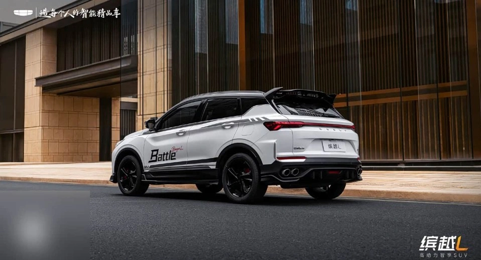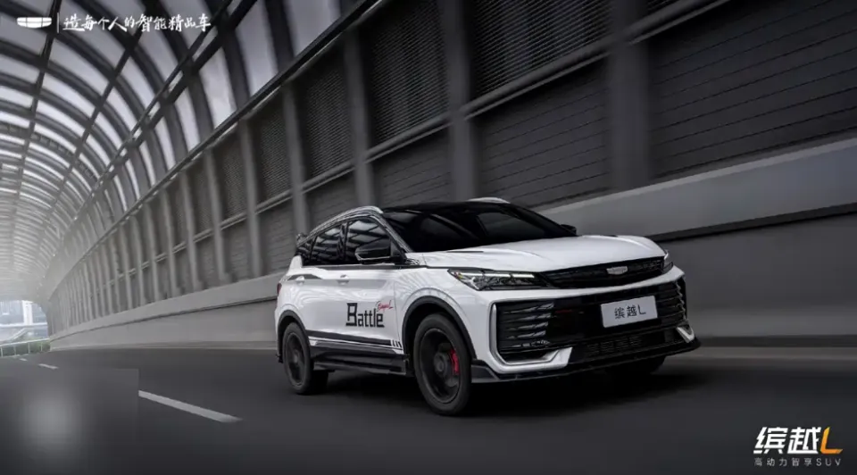 吉利缤越L Battle版于11月15日正式上市,定位小型运动SUV,搭载1.5T涡轮增压发动机与7挡湿式双离合变速箱,最大功率133千瓦,峰值扭矩290牛·米,车身尺寸为4380/1800/1609mm,轴距2600mm。