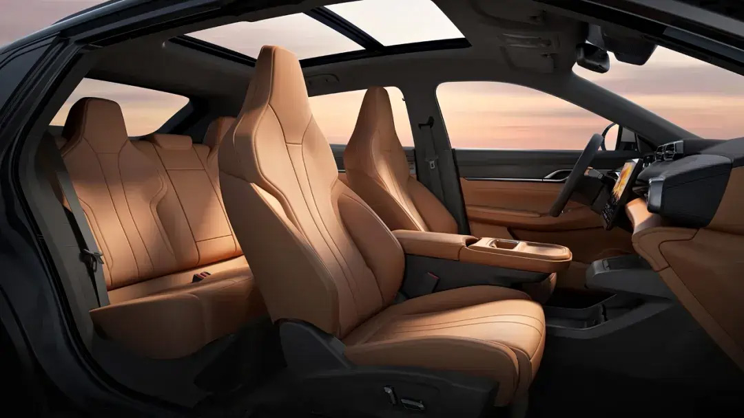 设计走的是溜背运动风,前脸贯穿式灯带加封闭格栅,隐藏门把手,尾部贯穿尾灯加扰流板,这套组合在这个价位是视觉及格线以上的答卷,不惊艳但也不拉胯。