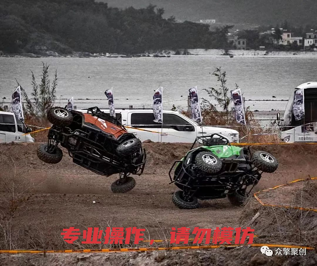 小众家的穿沙蛇UTV在众多赛车手的操控下,穿梭自如,甚至还开出了不一样的刺激新体验。
