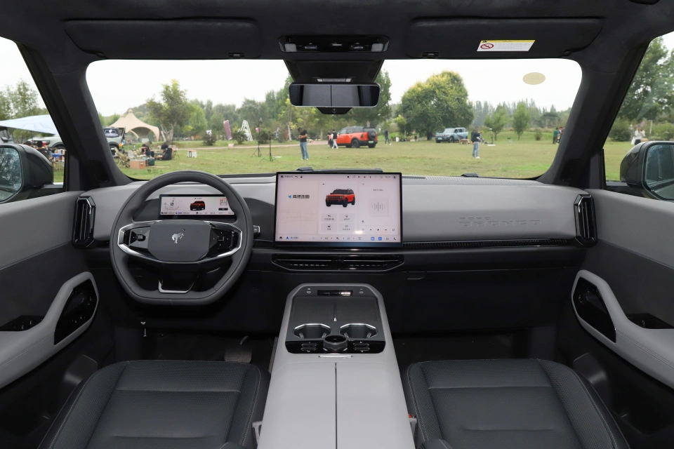 先看核心卖点,智趣烈马把“硬派+智能+露营”焊死在身上!外观是经典方盒子造型,可点亮“BRONCO”标识+双层灯带,比坦克300更具科技感,比豹5少了点浮夸。