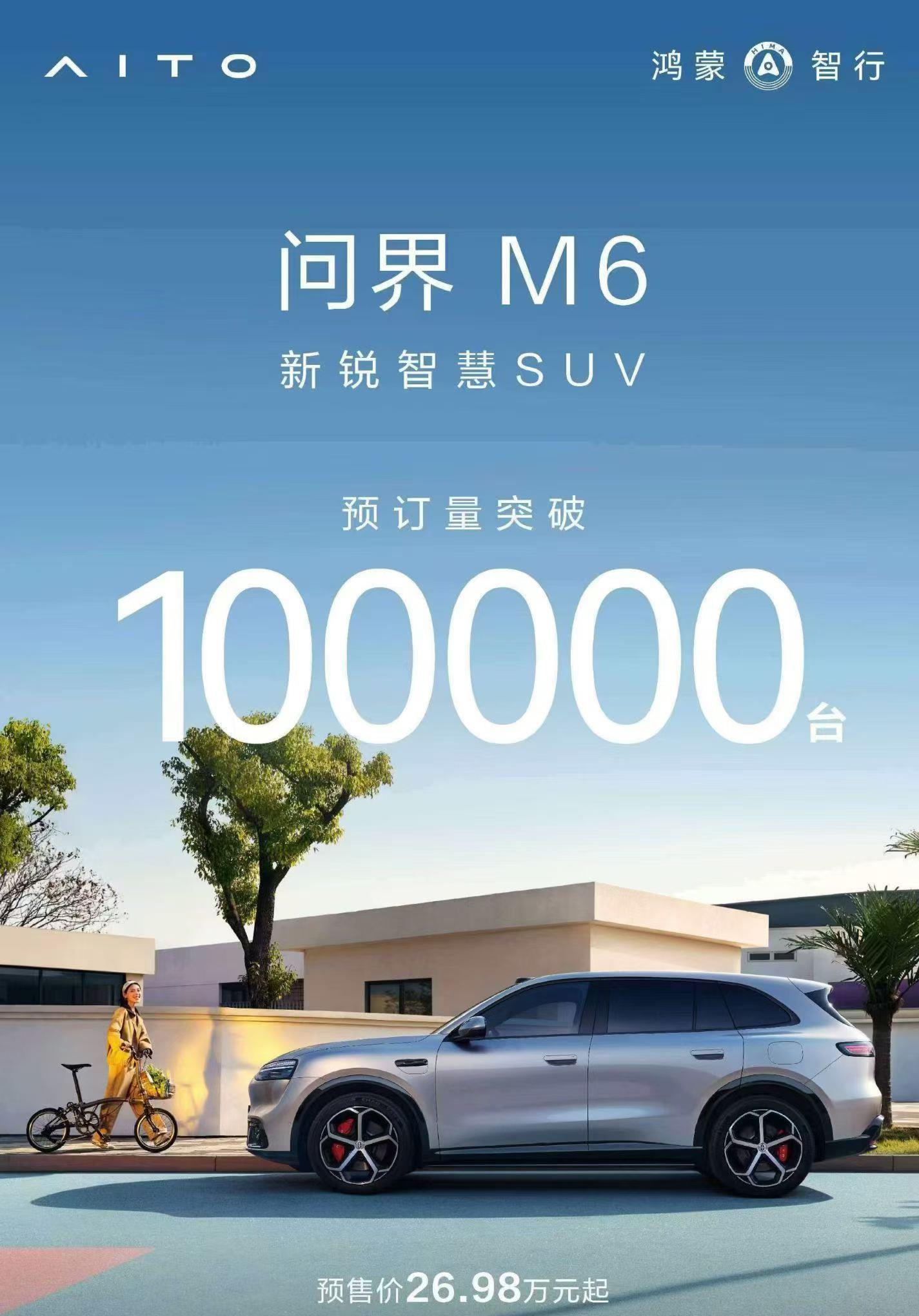 谁还说问界M6不行?预售不到20天小订突破10万台,首日6万台顶竞品半年销量!余承东这次是真拿数据打脸了