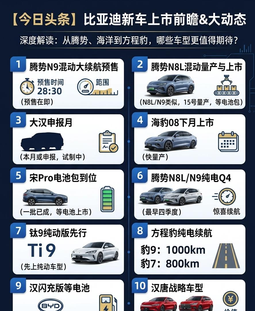 这一波比亚迪新车潮,确实给市场带来了很多新选择。从8.98万元的秦L DM-i,到45万起的腾势N9,再到续航1000公里的方程豹轿车,覆盖了不同的价格区间和需求类型。消费者有了更多选择,但也要花更多时间比较和考虑。