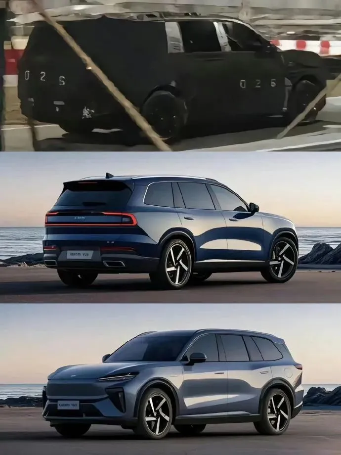 先说尺寸。车长超5.2米,轴距接近3.2米,提供6座和7座两种布局。和理想L9、问界M9站一起,气场一点不虚。外观延续了小米家族设计语言,封闭式前脸配贯穿式日行灯,车顶激光雷达是标配。据测试照片显示,车尾小蓝灯已经点亮,接近量产状态。