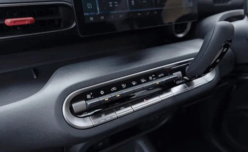 内饰这次官图发了,是真走心了。右舵布局是必须的,但最打动人的是那些“抠空间”的细节:专门插长柄伞的垂直槽、放卡片和手机的固定位、适配各种饮料瓶的杯架。贯通式前排座椅,主副驾随便挪,中控台上保留了一排实体按键,操作直观不反人类。悬浮式中控屏不算大,但配合液晶仪表,该有的功能都在。