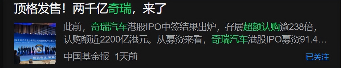 直到今年,奇瑞终于成功上市,不仅拿到了超额认购,还成为了今年以来港股规模最大的IPO。