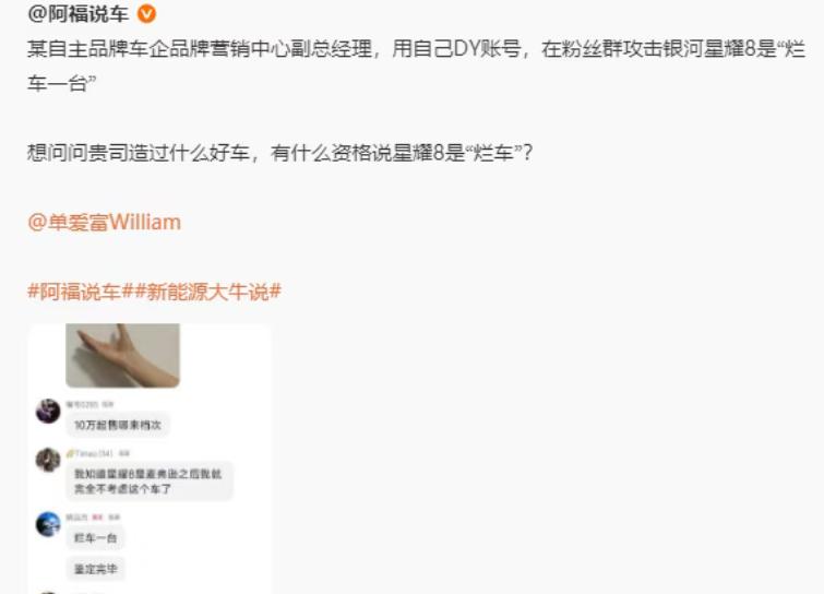 值得注意的是,在今年5月份,奇瑞被爆出高管姚远方称吉利的新车银河星耀8是烂车,这件事情也把奇瑞推上了风口浪尖。