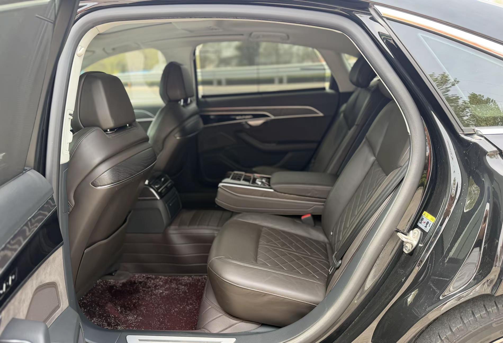 话说回来,开A8L和开5系,体验上完全是两回事。这代A8L的外观设计走的是家族路线,虽然开出去经常被当成A6L,但5302mm的车身往那一摆,气场确实不一样。A8L全系标配3.0T V6起步(也有2.0T版本),全时四驱、空气悬架、四轮转向,高速巡航那种沉稳扎实的感觉,5系确实给不了。后排空间更不用说,D级车的后排就是行政舱的标准,跷二郎腿都嫌空间太大。