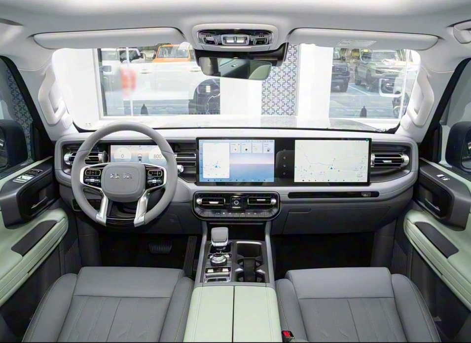 然而,真正的变革发生在你拉开车门之后。这也是它名字的由来——“巨幕”。它升级了一块超大尺寸的一体式连屏,横贯中控台,不仅尺寸更大,黑边也更窄,科技感瞬间拉满。这意味着,当你结束一天的越野颠簸,驶回城市公路时,你的副驾可以用这块屏追剧,你可以享受更丰富的在线导航和娱乐功能。它试图在保留越野铁骨的同时,包裹上一层精致的科技内饰,让强子这样的车主,在需要照顾家人感受的城市场景里,不再感到“窘迫”。