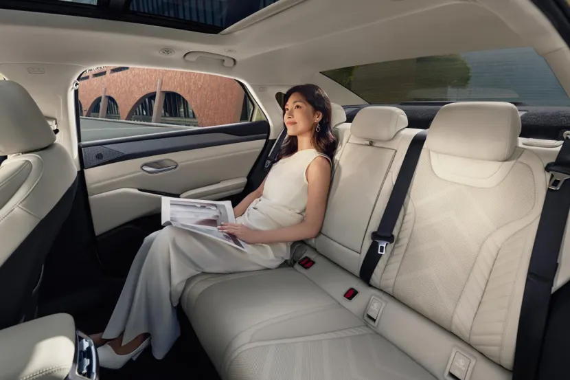 坐进内饰,简约科技风直接拉满。8.8英寸全液晶仪表+12.8英寸悬浮中控屏,搭配DiLink 100智能座舱,5G网络、四音区语音控制、深度AI交互全都有,动动嘴就能搞定导航、空调、音乐,操作流畅不卡顿。大面积软性材质包裹+龙鳞纹空调出风口,质感在线,电子怀挡设计让中控更整洁,后排腿部空间达3拳,地台纯平,后备箱宽敞还能4/6放倒,婴儿车、露营装备随便塞,家用全能打。