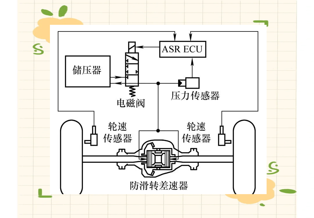 ECU作为ASR系统的核心,通过传感器收集的数据以及实车状态,计算并控制驱动车轮的滑转率,确保其维持在目标范围内。