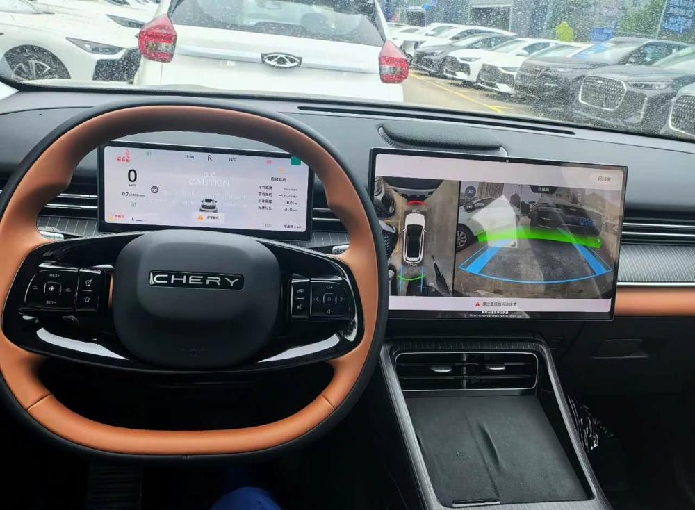 这车的外观设计真的很年轻时尚,豹款造型特别酷,全封闭式中网里面用银色点缀,搭配分体式大灯,科技感十足😎。侧面线条流畅饱满,半隐藏式门把手和19英寸双色密条辐铝合金轮辋,轮胎规格是235/50 R19。车尾是贯穿式尾灯,CHERY英文标识镶嵌在灯带上方,排气是隐藏式的,长宽高分别是4749mm、1880mm、1710mm,轴距有2825mm。内饰是黑棕双色配色,质感很好,两幅式方向盘和怀挡式电子挡杆都很方便。中控屏是13.2英寸竖置设计,倾斜角度合理,方便各位置的人观看和操作。车机系统支持在线导航、OTA升级、语音交互等功能,真的很实用👏。