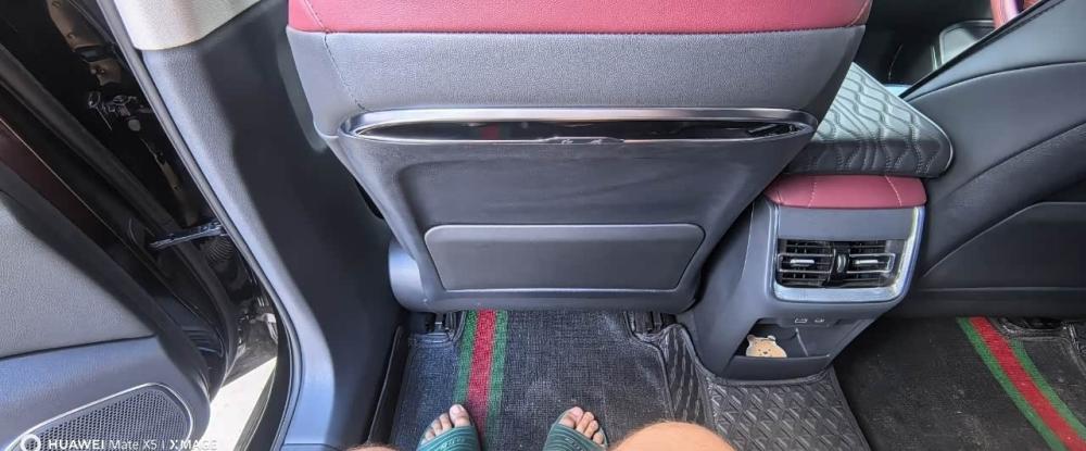 我这年纪,不喜欢太夸张或者前卫的设计,但也不想开个老气横秋的车。H5PHEV正面大格栅配红标,看着挺大气,侧面线条也干净简单,不像有些车看着臃肿。就是轮毂18寸的有点小气,要是能原厂配19寸的,气场就更足了,打算以后自己换套轮毂。内饰红黑撞色设计挺新颖大气的,银色饰条点缀也显得挺高级,完全不像16万级车型的内饰。车内大面积软质包裹,触感细腻,中控台下的皮质缝线也挺规整,做工不错。车内通透感也挺好,超大的全景天窗几乎覆盖了整个车顶,车内特别明亮,后排乘客也不会觉得压抑。就是中控大屏角度有点太倾斜了,我开车的时候想看屏幕信息,得稍微低下头才能看清,时间长了脖子会有点累,还可能增加驾驶风险,要是能把屏幕角度调得更平缓一点,就更好了。🚘