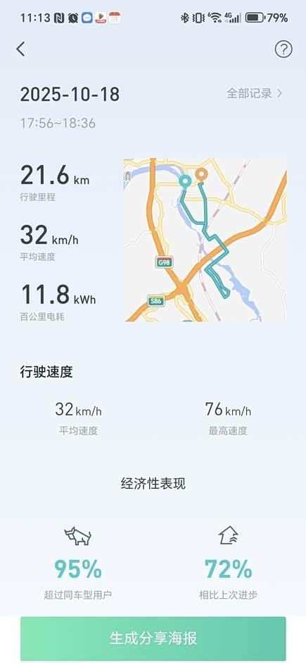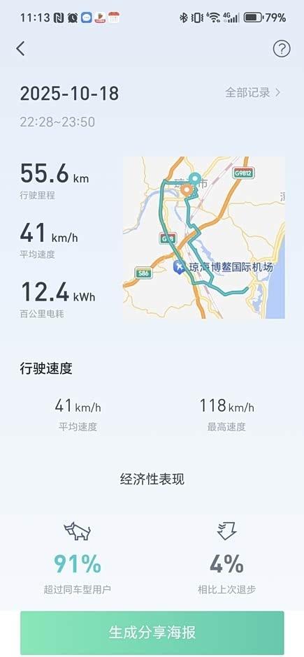 续航真的很给力,市内开的话,能跑出11.8的续航,差不多就是1:1了。高速上,就算开到118,电耗也能有12.5,挺不错的👍。