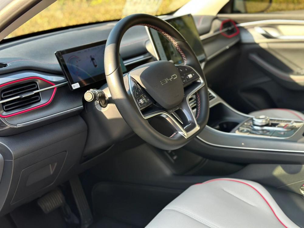 驱逐舰05的外观真大气,车型流线型好看,贯穿式的前大灯更有张力,显得更大气。我选的是白色,后期改造空间大,轮毂样子也好看。比亚迪的内饰没啥太多亮点,不过对我这种比较传统的人来说,规规矩矩的布局挺好的,内饰我也装饰了下。就是驱逐舰这款车的内饰颜色我不太喜欢,深色内饰不耐脏,我个人更喜欢浅色的。🚘