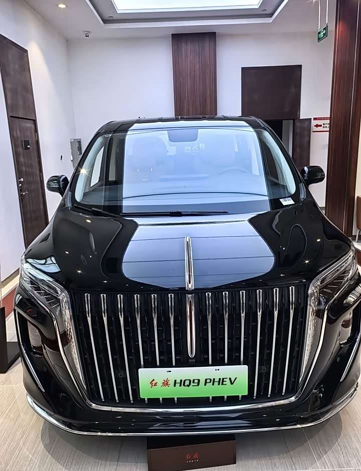红旗HQ9 PHEV的外观,真的是中式美学和现代设计的完美结合😍。前脸那个新红旗家族式的直瀑式进气格栅,一看就很有气势,再加上那个旗标logo和'高山飞瀑'式的镀铬装饰,还有'中流砥柱'的立体旗标,真的是庄重又不失动感。车身线条也很流畅,双腰线设计显得很有力量感。侧面还有镀铬饰条和红色旗标式门把手,更显精致奢华。车漆是专属的'量子银灰',很有金属质感,还有新能源的蓝色标识,真的是既经典又现代。内饰也是中式豪华和现代科技的完美融合👏。大面积的Nappa真皮和实木饰板,还有精致的回字纹缝线和旗标刺绣,真的是东方匠造工艺的体现。悬浮式联屏和AR-HUD抬头显示,让智能交互更方便。二排零重力座椅也很舒服,支持18向电动调节、通风加热和按摩功能。还有可升降的茶具置物台和独立天窗,真的是商务接待和家庭出游都挺合适的。细节处还有山水画纹理饰板、256色氛围灯和静音玻璃,真的是让人沉浸其中,享受豪华MPV的内饰体验😌。