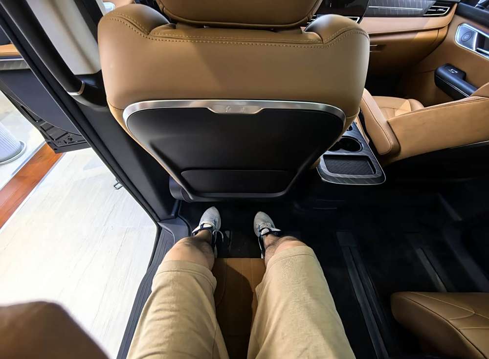 【空间】后排空间宽敞舒适,满足孩子的活动空间,孩子可以站起来,空间足够大,座椅很智能,孩子轻轻松松搞定。第二排的空间也可以没有那么大的束缚感,孩子可以躺着睡觉了。后排空间很宽敞。第三排的座椅支持前后和靠背角度调节,座椅依旧十分厚实,并且这台车的足够高,所以车内的头部空间十分充裕。