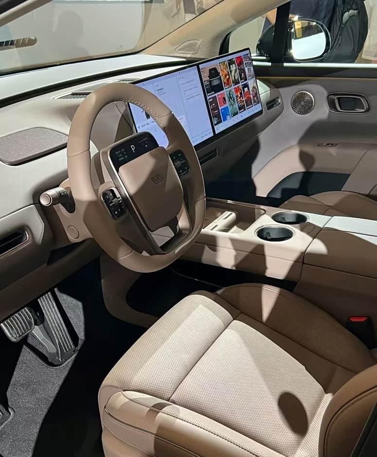 这车造型挺独特的,有点低趴的感觉。星环灯特别有辨识度,尾灯就一般般了。整体看起来更像MPV,不过不管是MPV还是SUV,适合自己家用就好。前脸看起来挺有科技感的,得慢慢适应。内饰挺简洁大方的,氛围灯还能调好多颜色,看起来挺高端的。座椅也挺舒服的,包裹性很好,加热、通风、按摩功能都有。二排的零重力座椅特别适合午休或者小憩一下。三排的空间也还可以,不算挤。