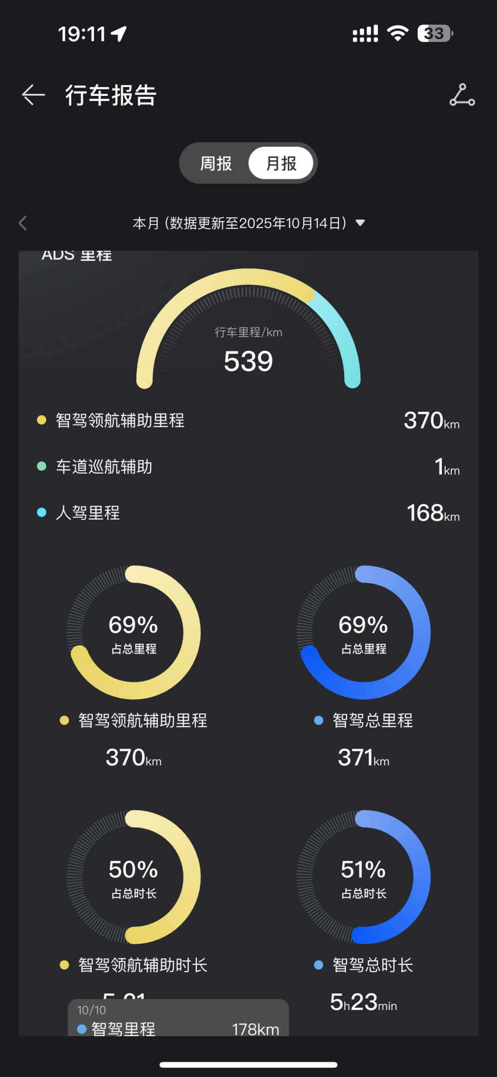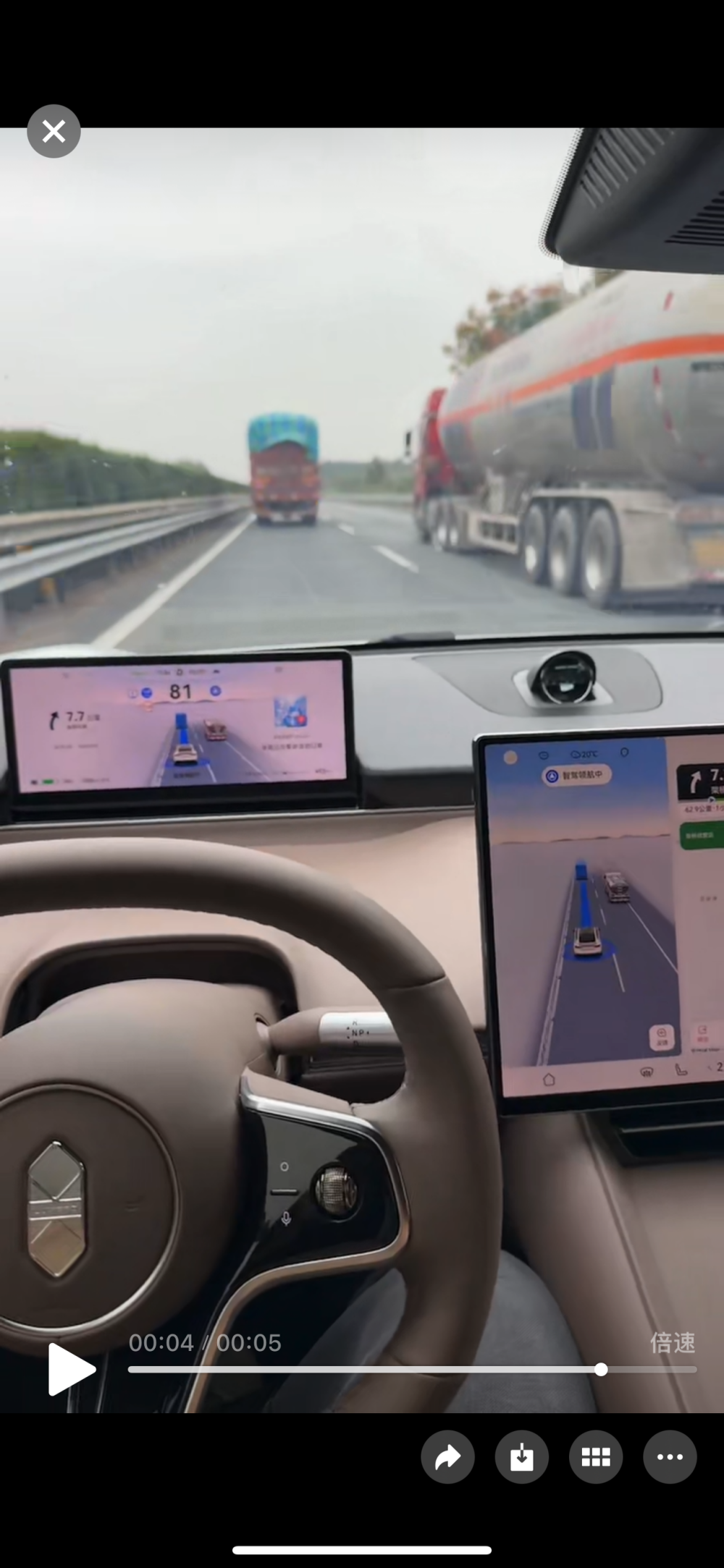 我没做很详细的续航测试,就简单说说吧。我在长沙提的车,95%的电开出来,在长沙转了大概50公里,然后上高速开回老家,这段路大概300公里。最后去充电的时候,还剩下34%的电,也就是说61%的电跑了350公里,我的是100度电版本哦😎。