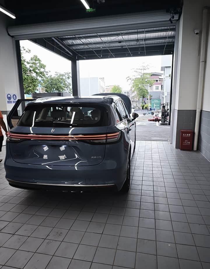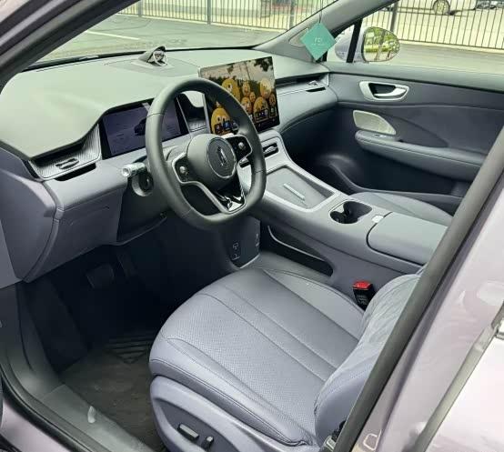尚界H5外观延续了鸿蒙家族的特点,偏稳重务实,适合家用。我这辆浅紫色车漆在阳光下特别有质感,时尚又高级。前脸封闭式,配上犀利的大灯和发光车标,一看就知道是鸿蒙智行的车。车身侧面线条流畅,腰线从车头到车尾,稳重中带点运动范。车尾贯穿式尾灯和前脸呼应,晚上开灯后很有辨识度。内饰简约科技风,灰色主色调,搭配皮质和翻毛皮,触感和视觉效果都不错。双屏设计,华为智能座舱,用起来很顺手,车机流畅、界面简洁、操作方便。方向盘握着舒服,多功能按键布局合理。不过和更高价位的车型比,细节精致度上还是有点差距。但作为家用车,这样的内饰表现完全够用啦😌。
