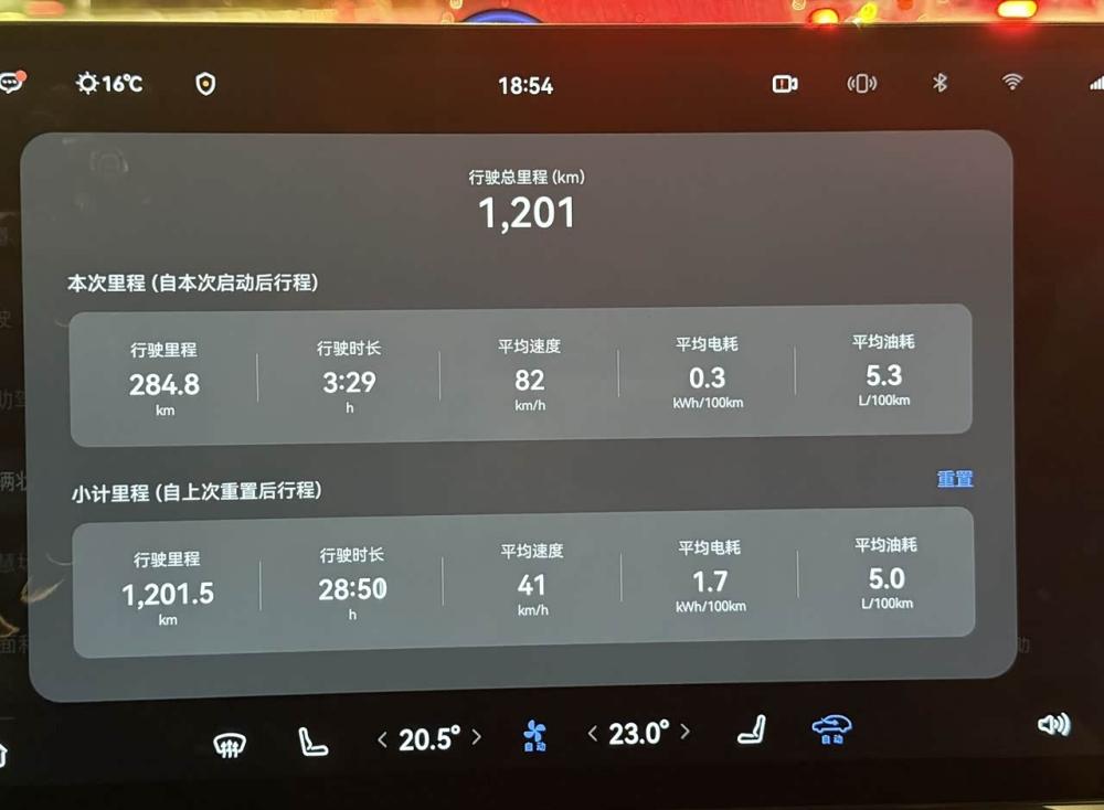 我这尚界H5增程Max开了1200多公里了,没怎么充电,平时上下班、接娃买菜,油耗也就5个油,真的很省。跑高速时,油耗增加了一点,但也才5.3个左右。感觉这一箱油,真的能跑1000公里。增程车的好处就是,不管是日常代步还是全家出远门,都不用担心续航问题😎。